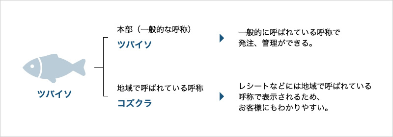 生鮮食品や総菜の呼称は各店舗によって異なるため、本部で同一商品として一元管理しながら、地域や店舗のお客様になじみのある呼称でレシート印字やシール印字カスタマイズをコントロールできます。