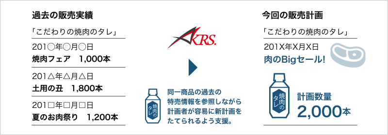 特売計画では商品単位で過去実績を参照しながら、意思決定支援機能を活用する事で、精度の高い計画を短時間で効率よく立案できます。また、店舗発注機能にも同様の参照、支援機能を有します。