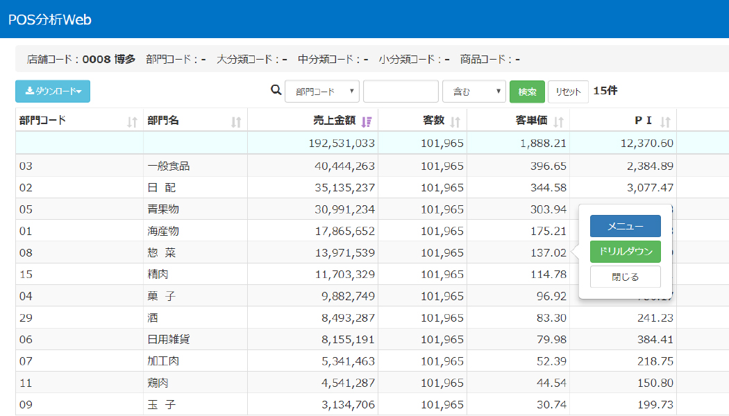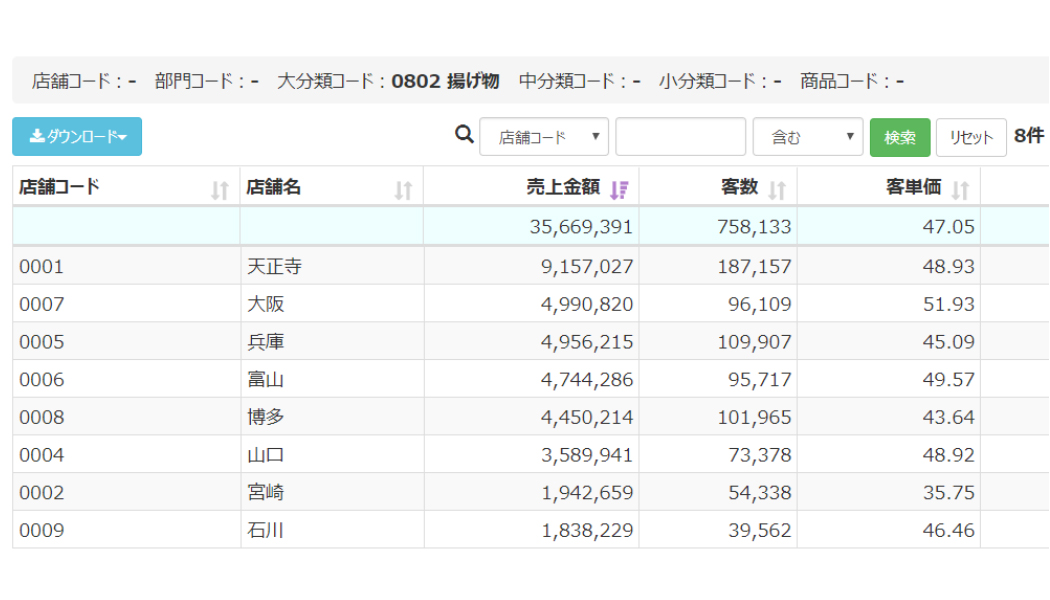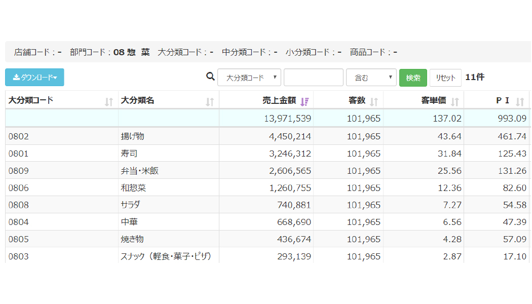 | POS分析 | ・POS分析 ・店舗比較分析 ・複数日比較分析 ・営業成果分析 |