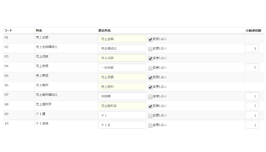 社内用語や実績データの表示などは企業によってそれぞれ異なります。AKRSは「企業の文化」を尊重し、分析システムでの用語表示や小数点桁数など企業毎に設定することができます。
